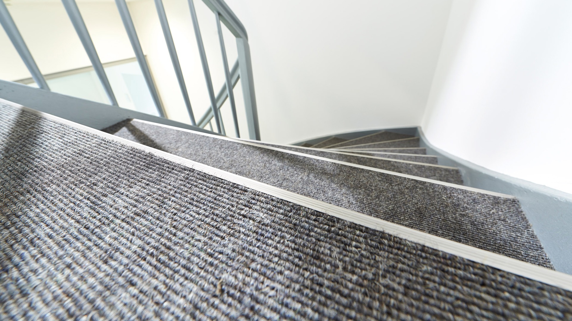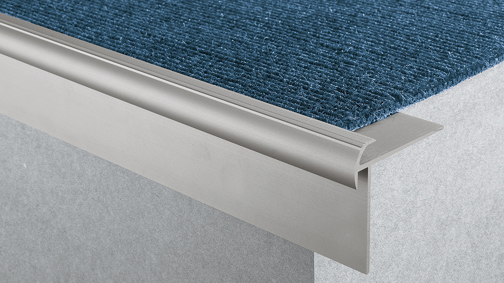 TREPPENPROFILE aus Neusilber sind optimal für die Gestaltung und Renovierung von Treppen mit Tretford-Teppich. Die Rillen im Profil sorgen für einen sicheren Auftritt. Die Kombination mit Tretford-Teppich reduziert Trittschall und erhöht den Begehkomfort.